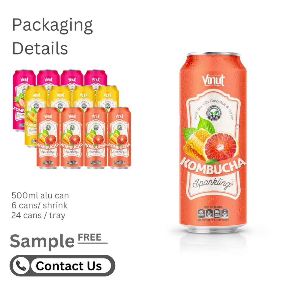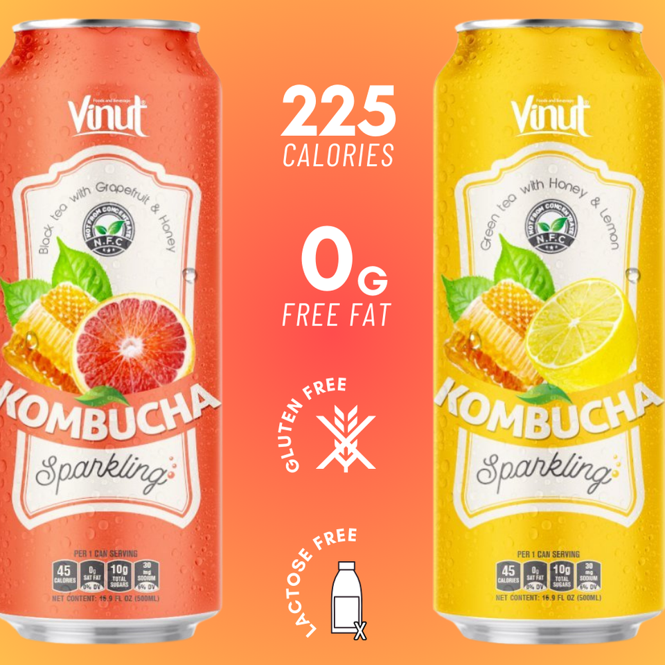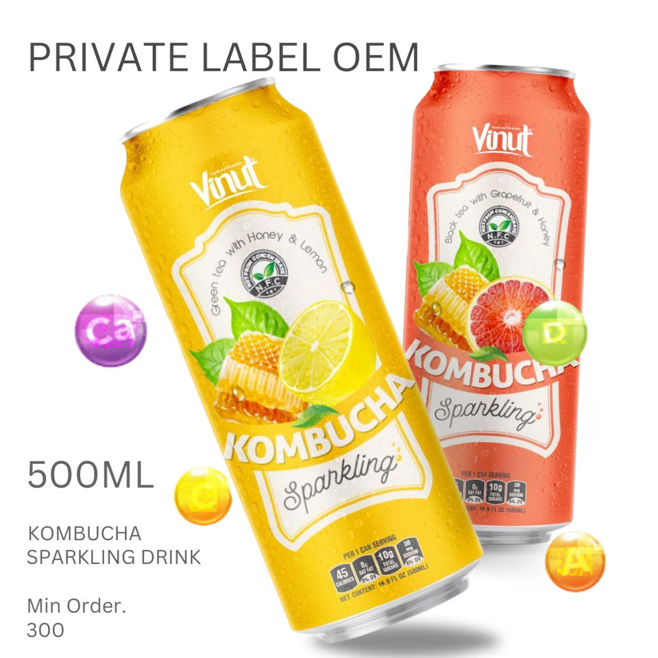Kombucha ชาเขียว vinut 500มล. พร้อมน้ำผึ้งและเครื่องดื่มน้ำมะนาวผลิตตามสั่งผลิตเครื่องดื่มจากเวียดนามได้ฟรี
