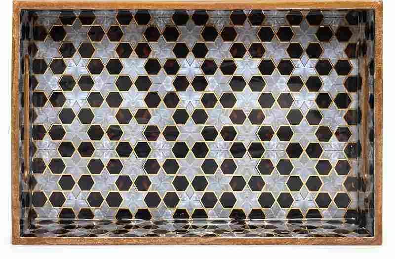 ถาดอาหารเช้าขนาดใหญ่ลายพิมพ์เคลือบอีนาเมล ถาดเสิร์ฟไม้แท้ทรงสี่เหลี่ยมผืนผ้าสำหรับตกแต่งในโรงแรมและร้านอาหาร