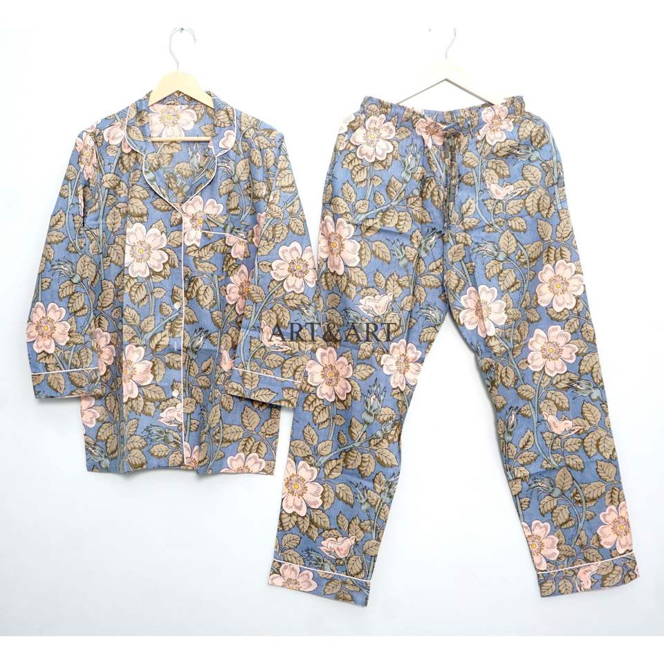 ชุดนอนหรูหราสุดฮิต เสื้อเชิ้ตแขนยาวพร้อมกางเกงขายาว ชุดนอนคุณภาพสูงสำหรับผู้หญิง ผ้าฝ้าย ชุดนอนแบบกำหนดเองได้