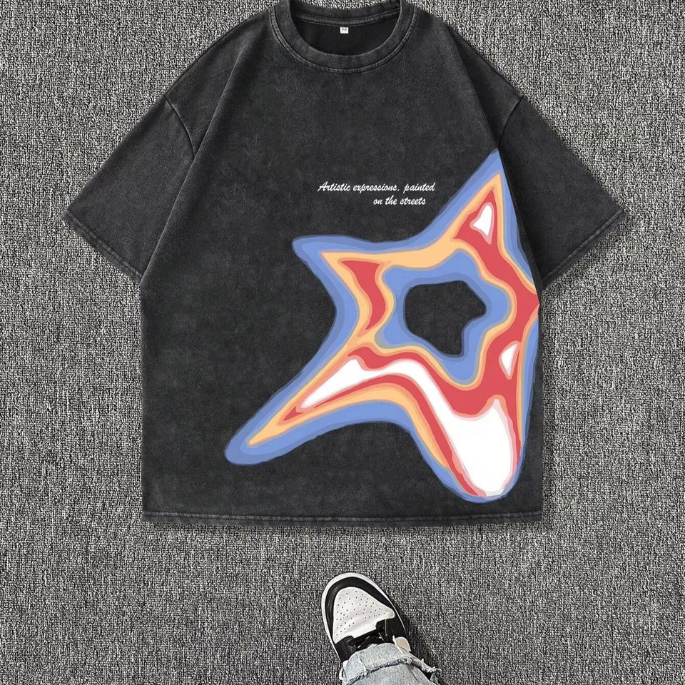 เสื้อยืดพิมพ์ลายวินเทจซักกรด/ซักแล้วทำจากผ้าฝ้ายเนื้อนุ่ม100% จากปากีสถาน
