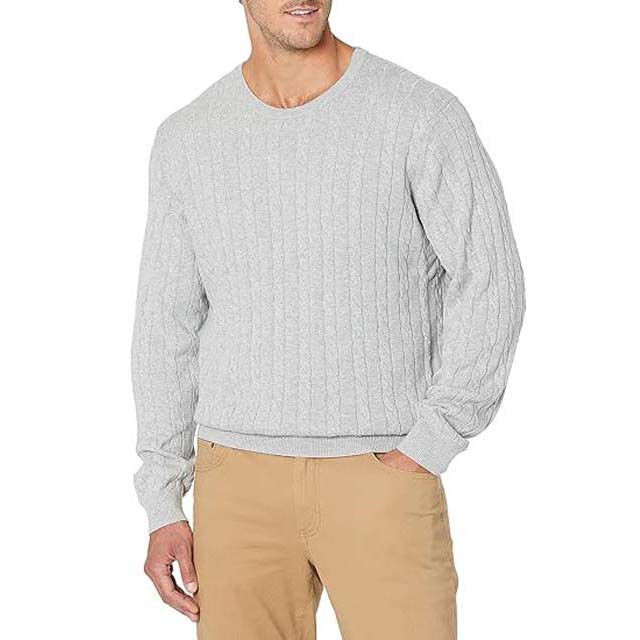เสื้อสเวตเตอร์ถักแบบสวมหัวคอกลมสำหรับผู้ชายเสื้อสเวตเตอร์ผ้าฝ้ายลำลองน้ำหนักเบาแบบคลาสสิกขายดี