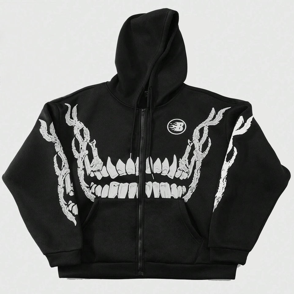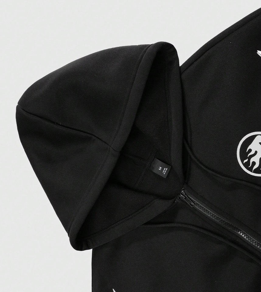 เสื้อสเวตเตอร์แขนยาวแบบมีฮู้ดสำหรับผู้ชายเสื้อสเวตเตอร์มีซิปรูดซิปขึ้นสำหรับ100% กะโหลกแขนยาวแบบกำหนดเองได้