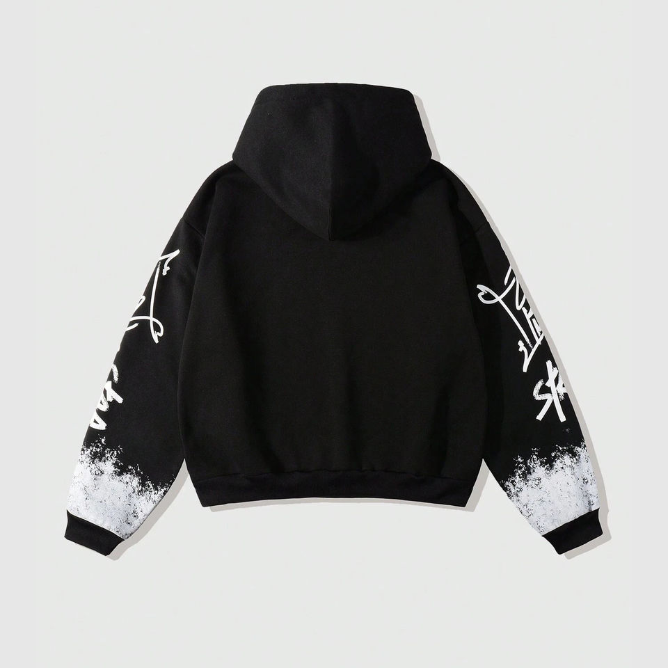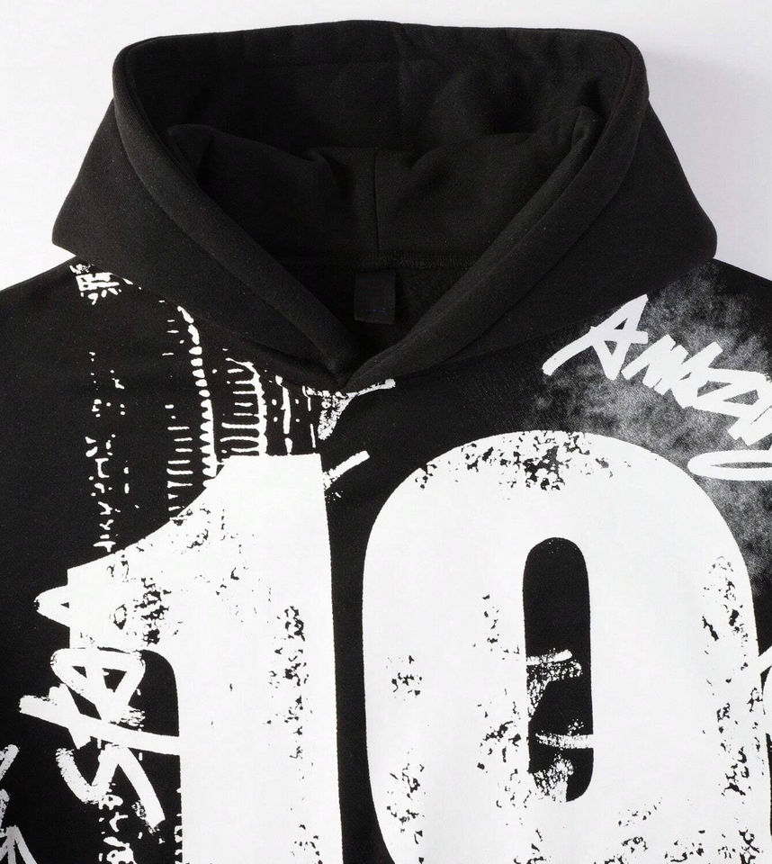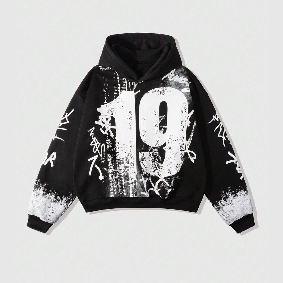 เสื้อฮู้ดดี้พิมพ์ลายวินเทจทำมือสำหรับผู้ชาย สไตล์สตรีทแวร์โอเวอร์ไซส์ แขนยาวถึงข้อมือ สำหรับลุคสตรีทแวร์ลำลอง