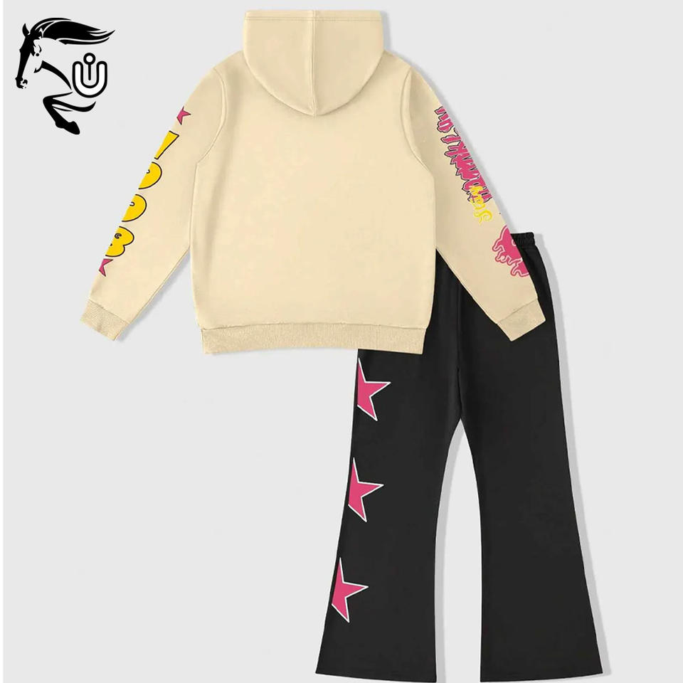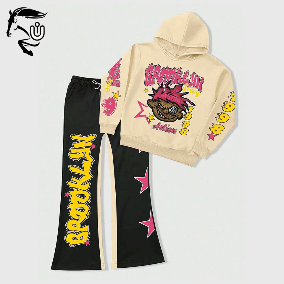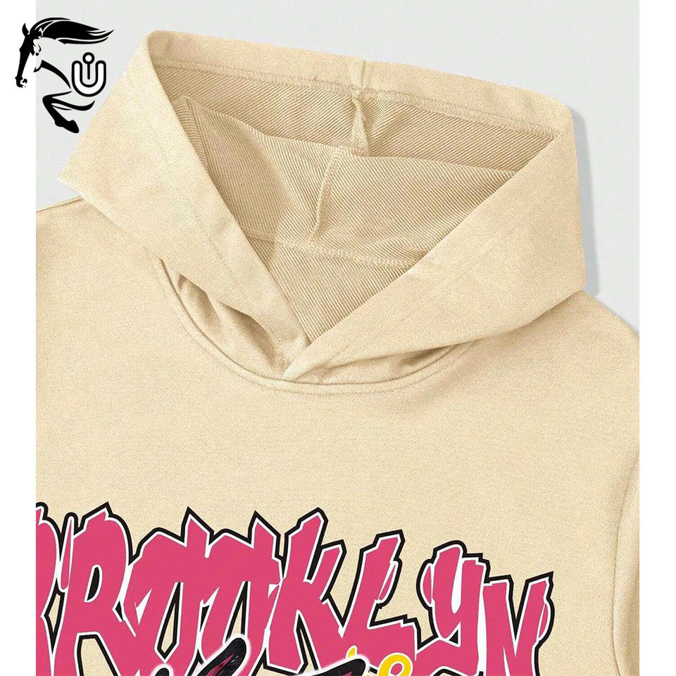 ชุดวอร์มทรงหลวมสำหรับผู้ชายเทรนด์เสื้อสเวตเชิ้ตมีฮู้ดพิมพ์ลายการ์ตูนและตัวอักษรออกแบบได้ตามต้องการ