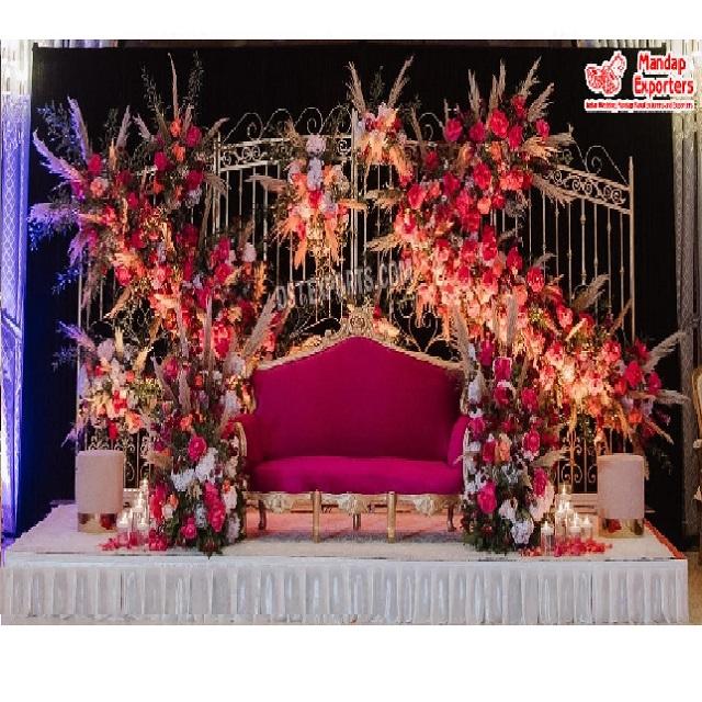 ประตูโลหะยอดนิยมสําหรับการตกแต่งเวทีงานแต่งงานที่ไม่ซ้ํากันงานแต่งงานโลหะฉากหลังงานแต่งงานในร่มธีมเวทีโค้ง