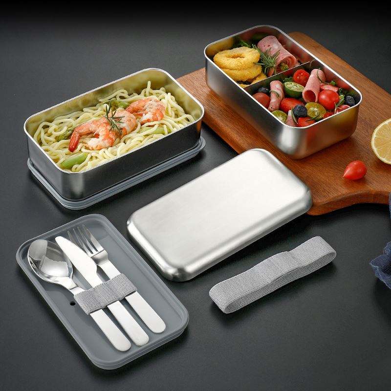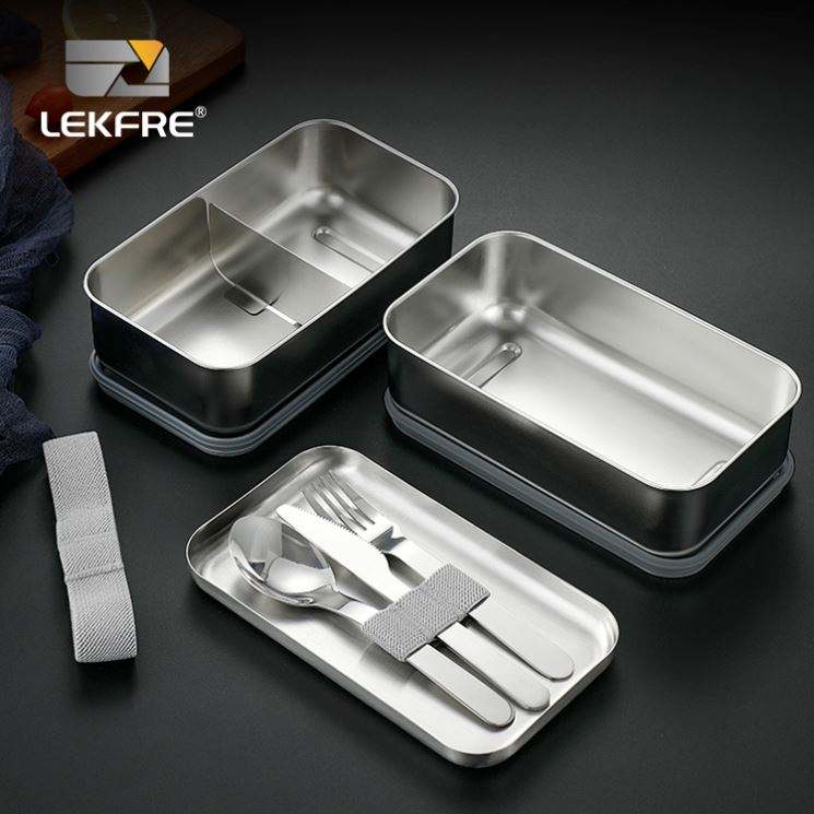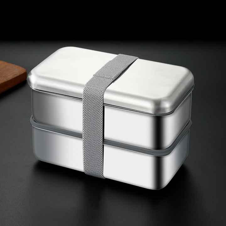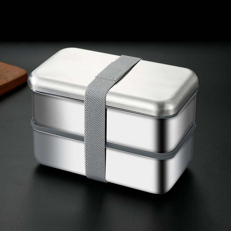 กล่องข้าวโลหะสแตนเลสสำหรับผู้ใหญ่ กล่องเบนโตสองชั้น สแตนเลส SS304 กล่องข้าวเบนโต