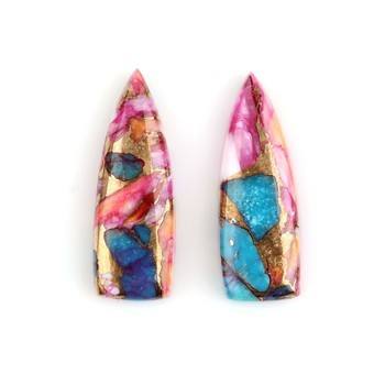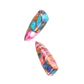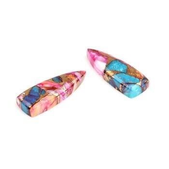 พลอยทองแดงผสมแร่หอยนางรมสีเทอร์ควอยซ์ขนาด10X28มม. พลอยทรงหลวมสำหรับทำเครื่องประดับ