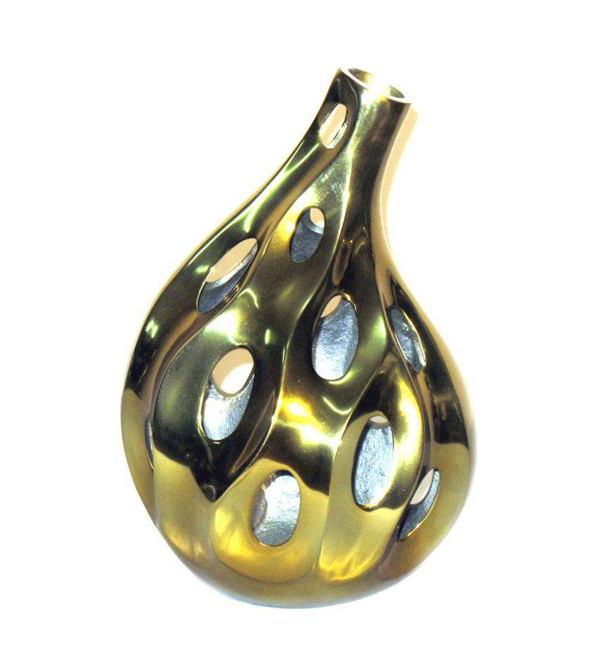 แจกันโลหะเจาะรูสีทองทันสมัยได้รับความนิยมพร้อมดีไซน์หรูหราคุณภาพระดับพรีเมียมสำหรับผู้ถือดอกไม้แบบ arificial เหมาะสำหรับความหรูหรา