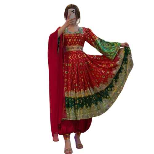 ชุดเดรสทรงเอไลน์ยาวระดับเข่าสไตล์อัฟกานิคูชี แต่งลูกไม้ปักลายวินเทจทำมือสุดฮิต พร้อมผ้าคลุมไหล่