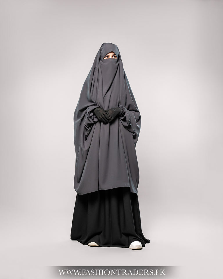 ชุดเดรสผ้าโพลีเอสเตอร์ระบายอากาศได้ดีสไตล์มุสลิมแบบเรียบง่ายทรงหลวมสีเทา