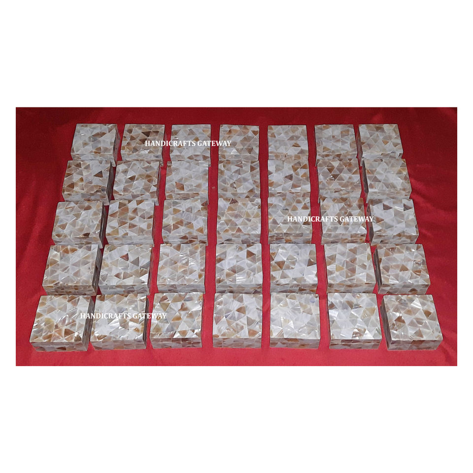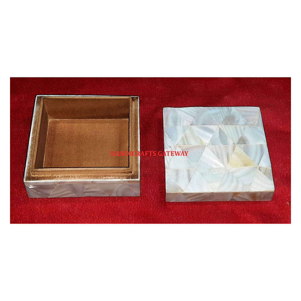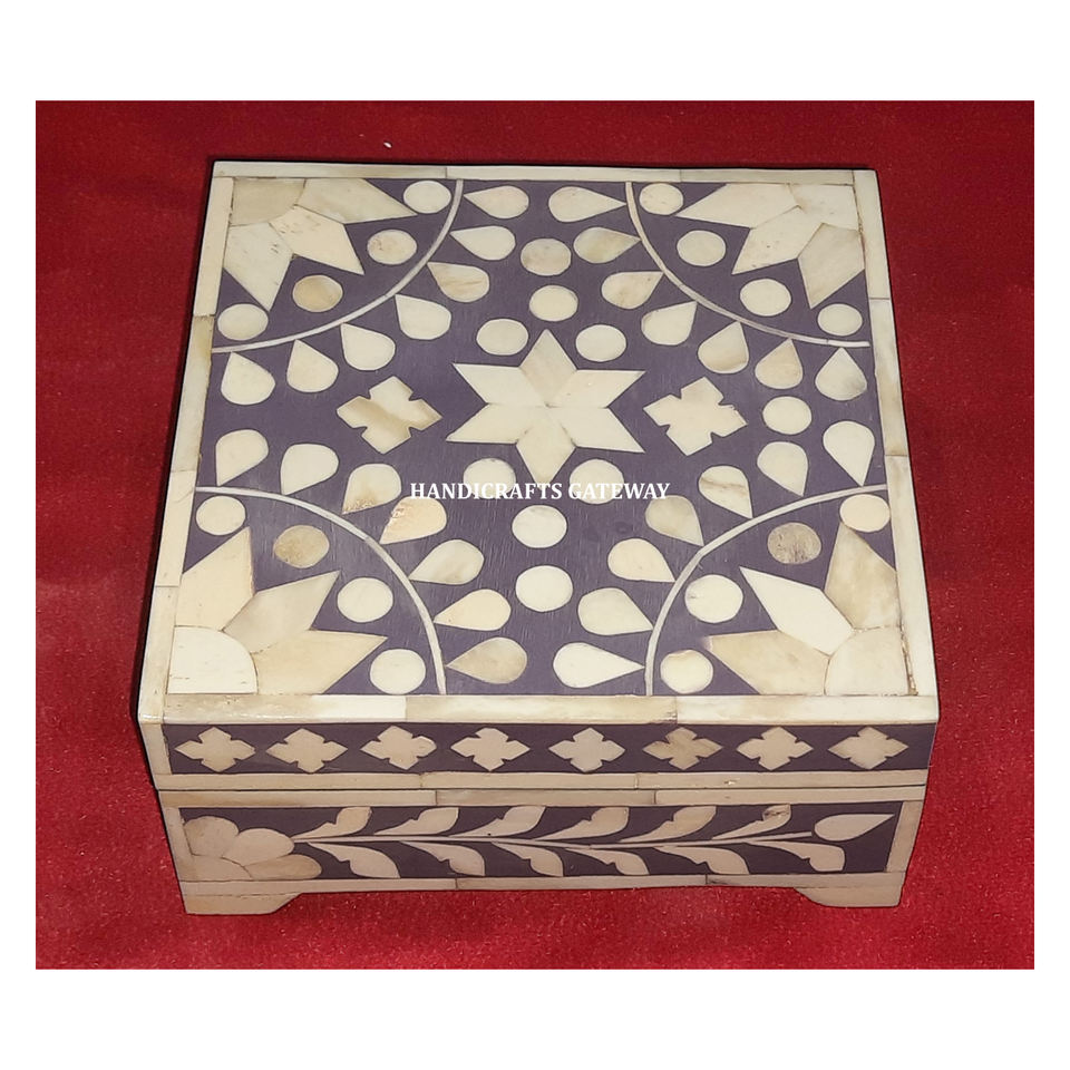 Latest High Quality Handmade Design Wooden Mother of Pearl Jewellery Box Purple Color With Square Shape Use For Necklace Packing