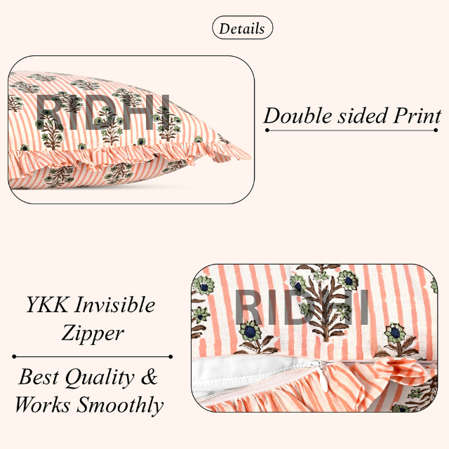 Trending New Salmon Blossom Stripe Ruffle Western Style Pure Cotton Removable Washable Modern Luxury Floral Throw Pillow Cover