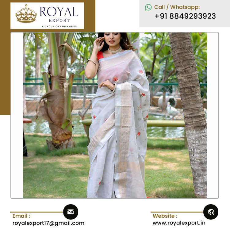 ผ้าลินินแท้ทอจากผ้า zari แท้และเย็บปักถักร้อยหนักทั่วส่าหรี