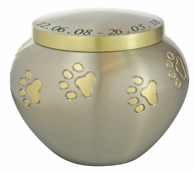 ชามโกศโลหะทำจากทองเหลืองพร้อมฝาปิดสุญญากาศดีไซน์พิมพ์ลายอุ้งเท้าสัตว์เลี้ยงโกศโลหะปลอดภัยตลอดไป
