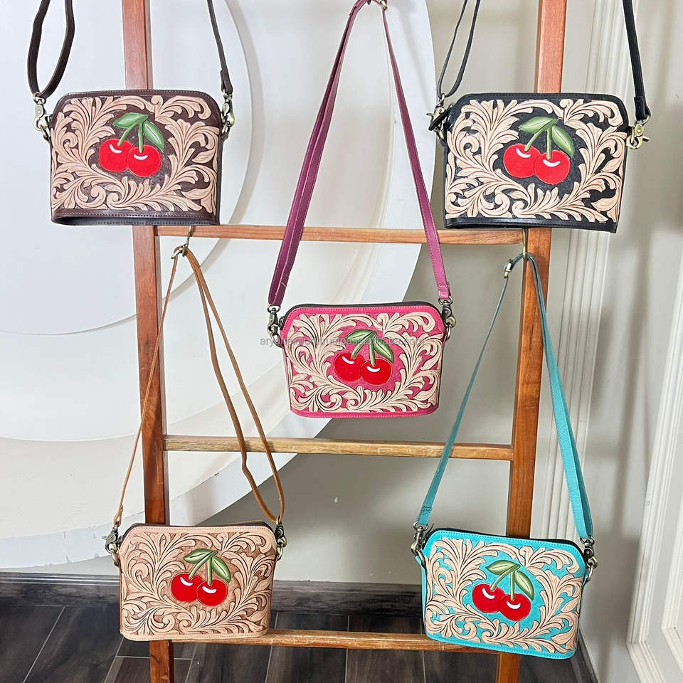 Product Name:Hand Tooled Genuine Leather Cherry Crossbody Bag