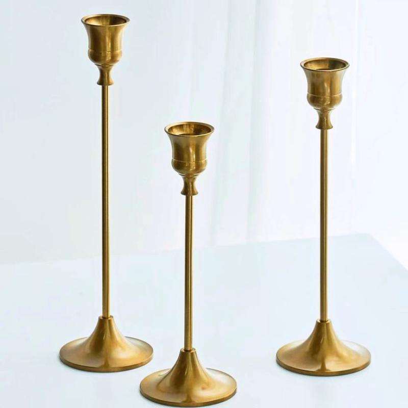 ชุดเชิงเทียนทองเหลืองมี3ขนาดและรูปทรงที่กำหนดเองสำหรับงานแต่งงานงานปาร์ตี้ดีไซน์พรีเมียม
