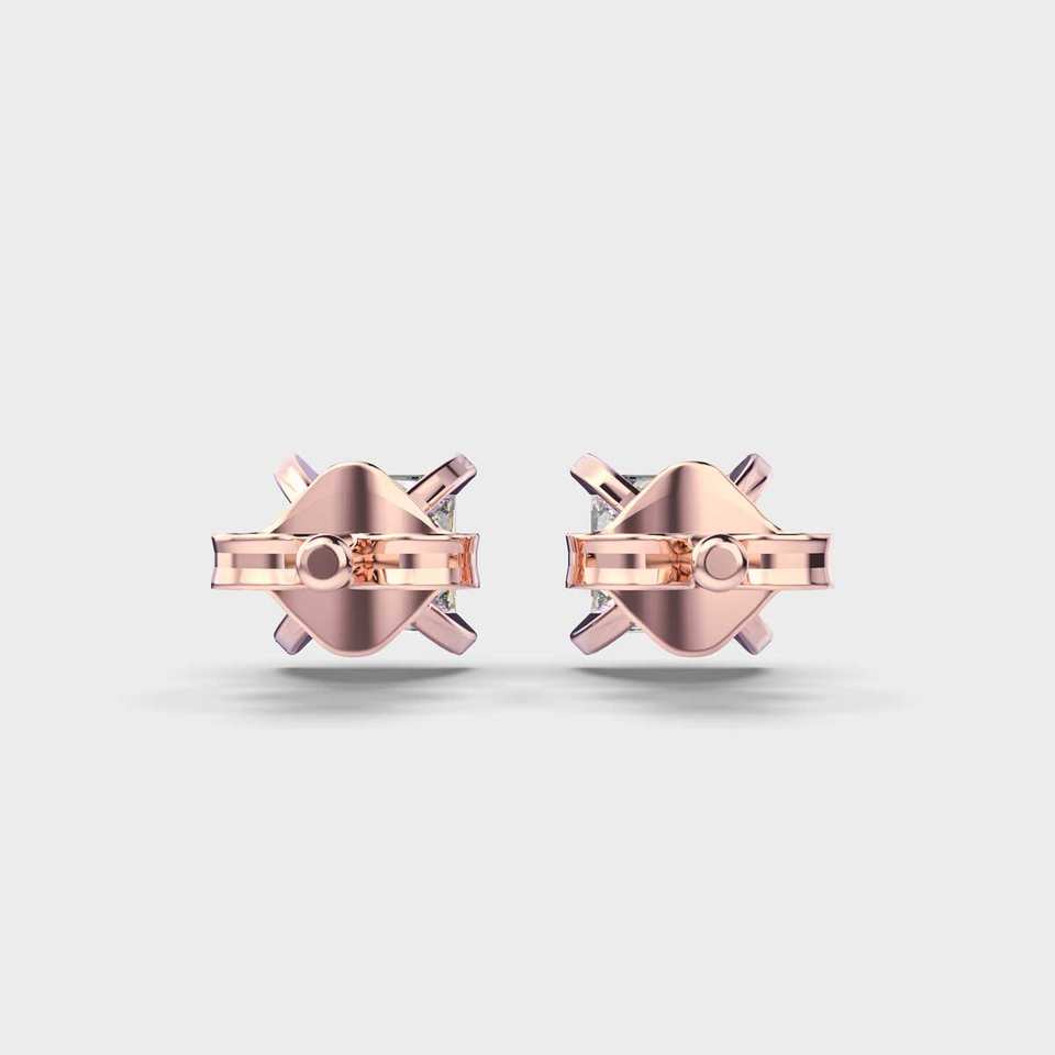 ต่างหูเม็ดเดี่ยวประดับเพชรที่ปลูกในห้องปฏิบัติการแบบเจ้าหญิงแต่ละอันขนาด5.5มม. 925แบบกดด้านหลังเป็นสีเงินชุบทองลายดอกไม้สำหรับผู้หญิง