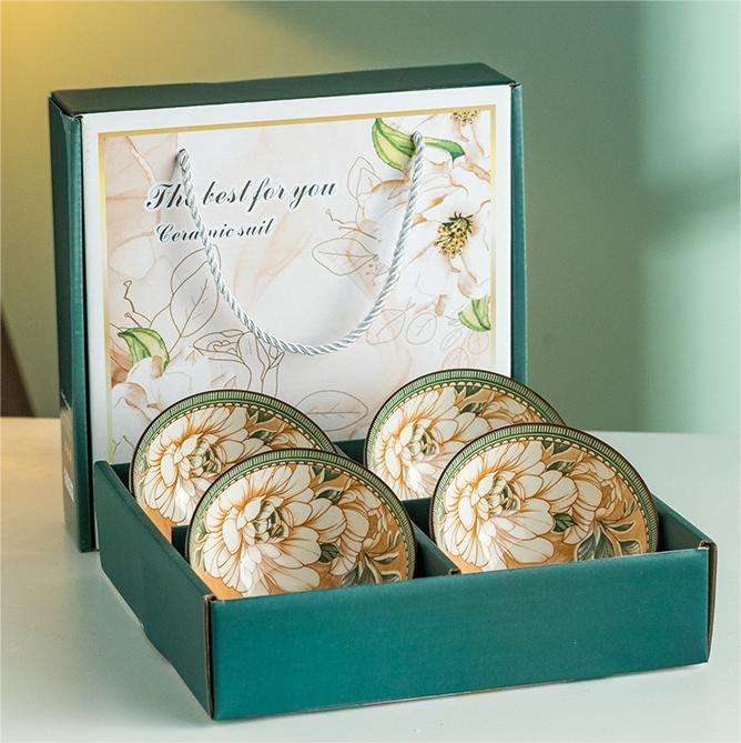ชุดชามเซรามิกลายดอกคาเมลเลียพร้อมกล่องชุดของขวัญถ้วยชาม4ชามสำหรับเป็นของขวัญธุรกิจขายส่ง