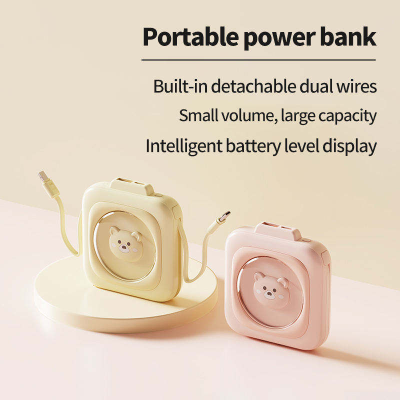 พาวเวอร์แบงค์ขนาดเล็กแบบพกพา10W 5000/10000mAh ดีไซน์น่ารักมีสถานีชาร์จสายในตัวสำหรับการเดินทาง