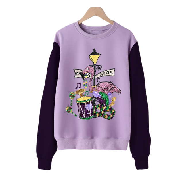 Product Name:Mardi Gras 2 Colored ribbed women oversized sweatshirts