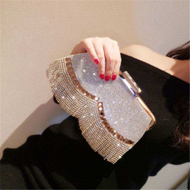 กระเป๋าคลัทช์งานเลี้ยงตอนเย็นประดับพู่ประดับพลอยเทียมสำหรับผู้หญิงสินค้ายอดนิยมสำหรับ2025ดรอปชิปกระเป๋าทรงเสน่ห์มีที่จับอเนกประสงค์