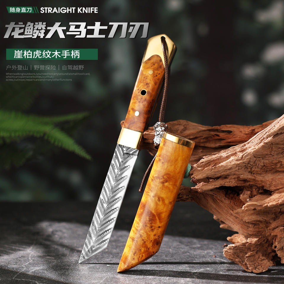 มีดเหล็กดามัสกัสความแข็งสูงสำหรับการตั้งแคมป์เก็บสะสมเครื่องมือกลางแจ้งสไตล์ธิเบตครบชุดสำหรับการดรอปชิป