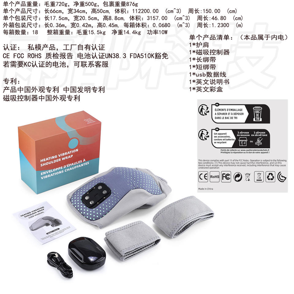 เครื่องนวดไหล่แบบรางแม่เหล็กพร้อมมอเตอร์แบบสั่นสำหรับเครื่องนวดข้อต่อแบบพกพาสำหรับอาการปวดไหล่