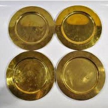 แผ่นที่ชาร์จโลหะทองเหลืองบริสุทธิ์แบบตอกทำเสร็จแล้วของตกแต่งห้องครัวที่เสิร์ฟอาหารจานชาร์จ