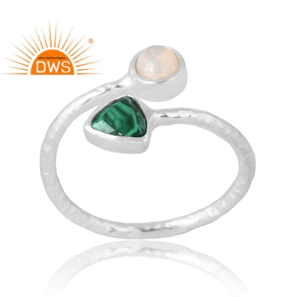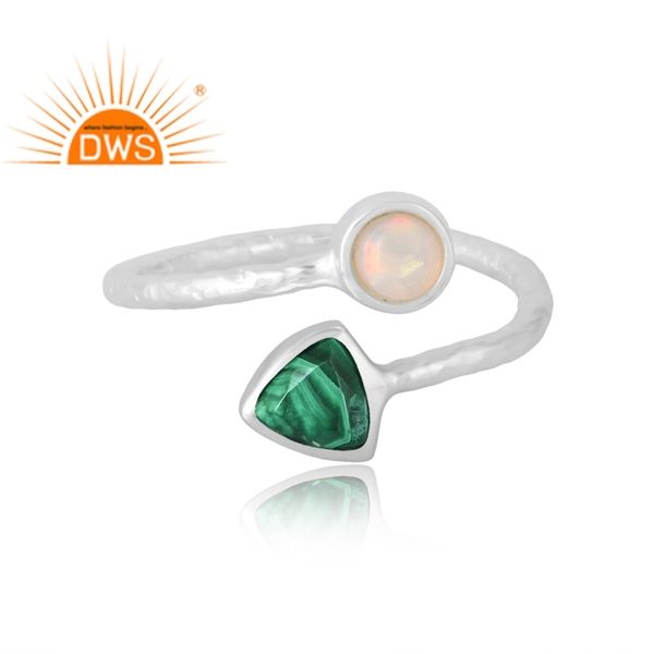 แหวนพลอยโอปอลและมาลาไคต์ธรรมชาติทำจากเงินสเตอร์ลิง925สำหรับผู้ผลิตเครื่องประดับแบบกำหนดเอง
