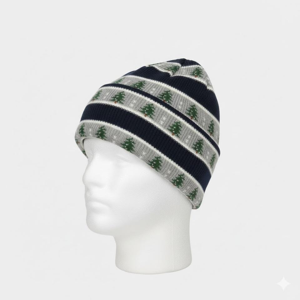 หมวกบีนนี่ถักไหมพรมลายแจ็คการ์ดให้ความอบอุ่น