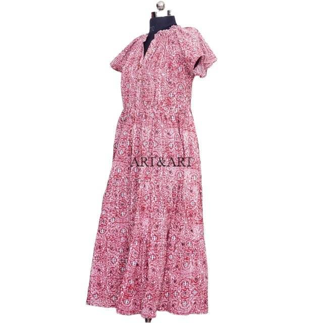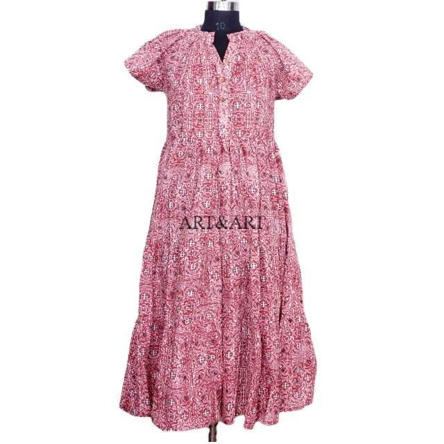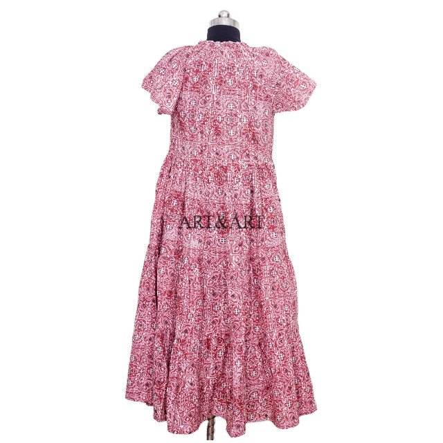 เดรสทรงเอลายดอกไม้หวานๆ สไตล์มิดิสำหรับผู้หญิง คอวี แขนสั้น มีเชือกผูกเอว นำเข้าจากอินเดีย กำลังเป็นที่นิยม