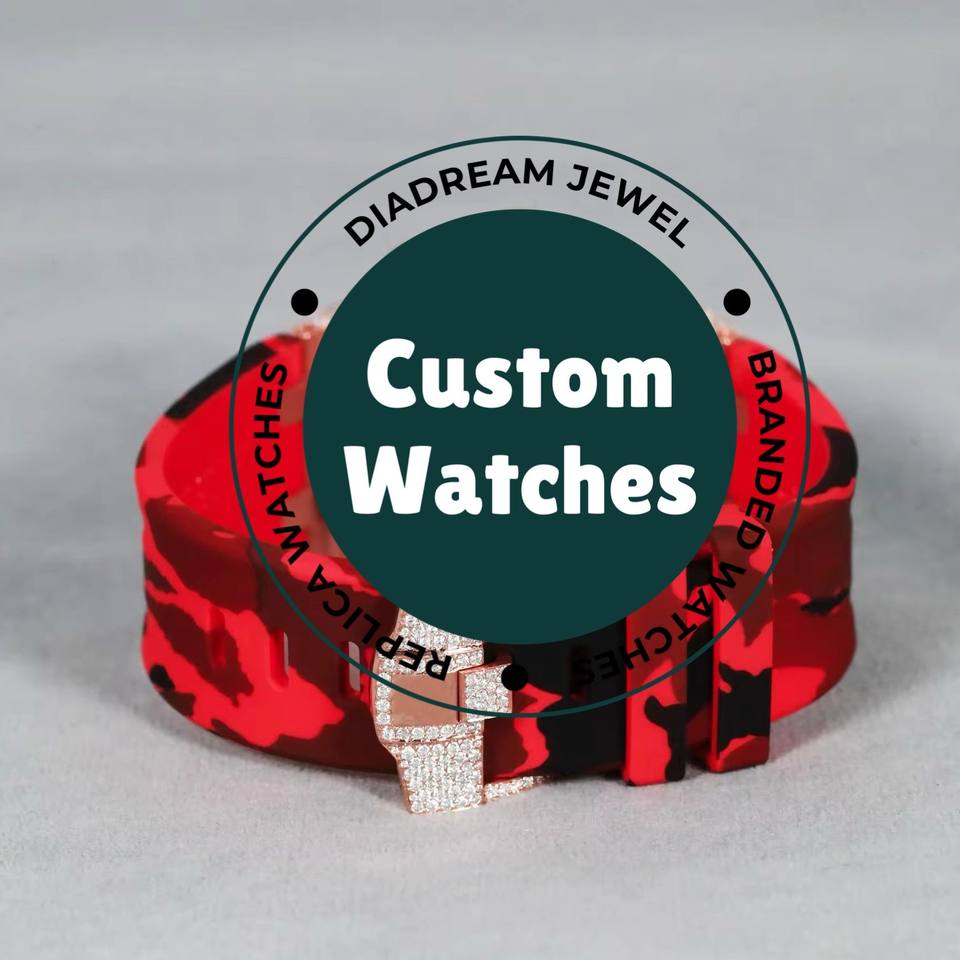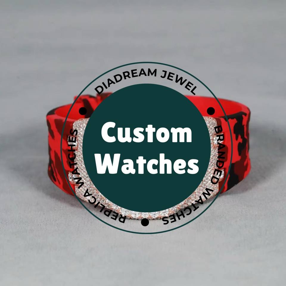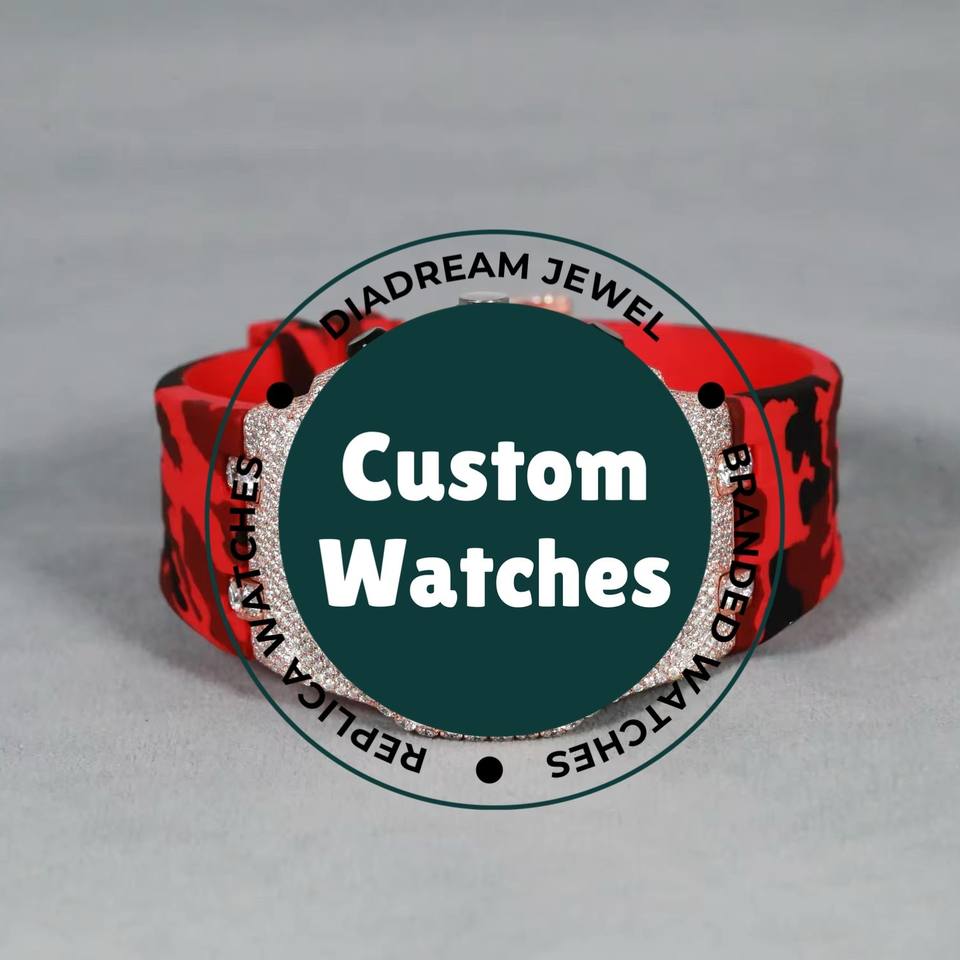นาฬิกาเพชรโมอิสสำหรับผู้ชายสายคาดสีแดงประดับแบรนด์ชั้นนำที่ทำจากสเตนเลสสตีลตามสั่ง