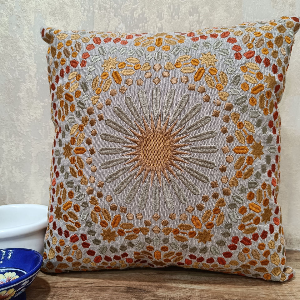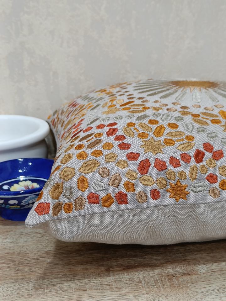 หมอนอิงตกแต่งแบบดั้งเดิมที่100% ปลอกหมอนผ้าคอตตอนสีส้มปักลายดวงอาทิตย์สีทึบสำหรับใช้ในบ้าน