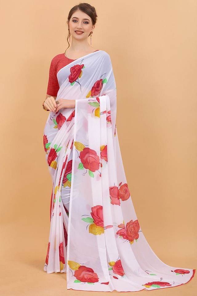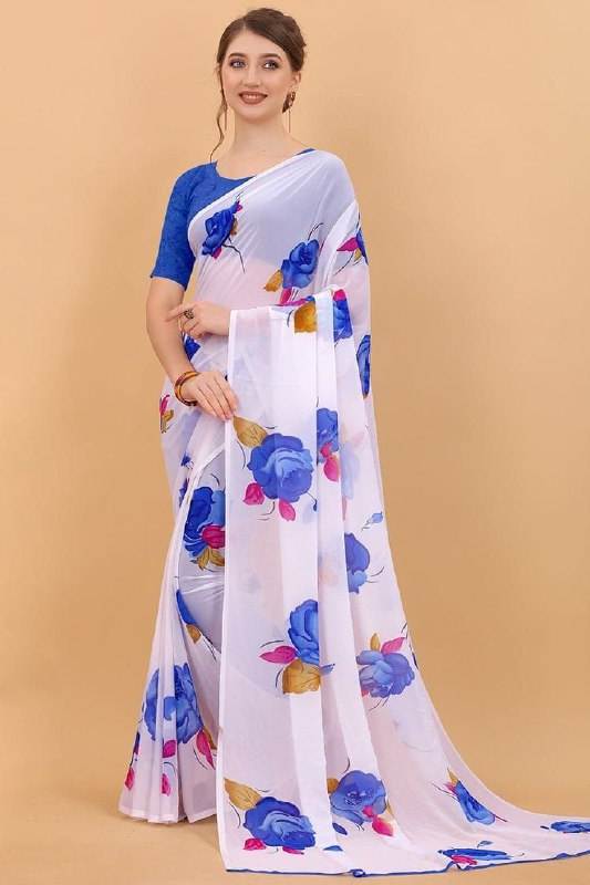 Saree georgette ผ้าไหมที่มีการเย็บปักถักร้อยแบบอินเดียที่ทันสมัยทันสมัยทันสมัยสไตล์ชาติพันธุ์และนุ่ม Banarasi รุ่นแฟนซีจำนวน