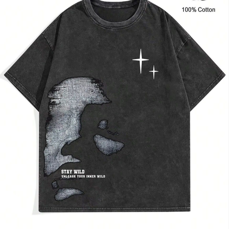 เสื้อยืดซักพิมพ์ลายกรดวินเทจสำหรับผู้ชายผ้าฝ้าย100% นุ่มพิมพ์ดิจิตอลผลิตในปากีสถาน