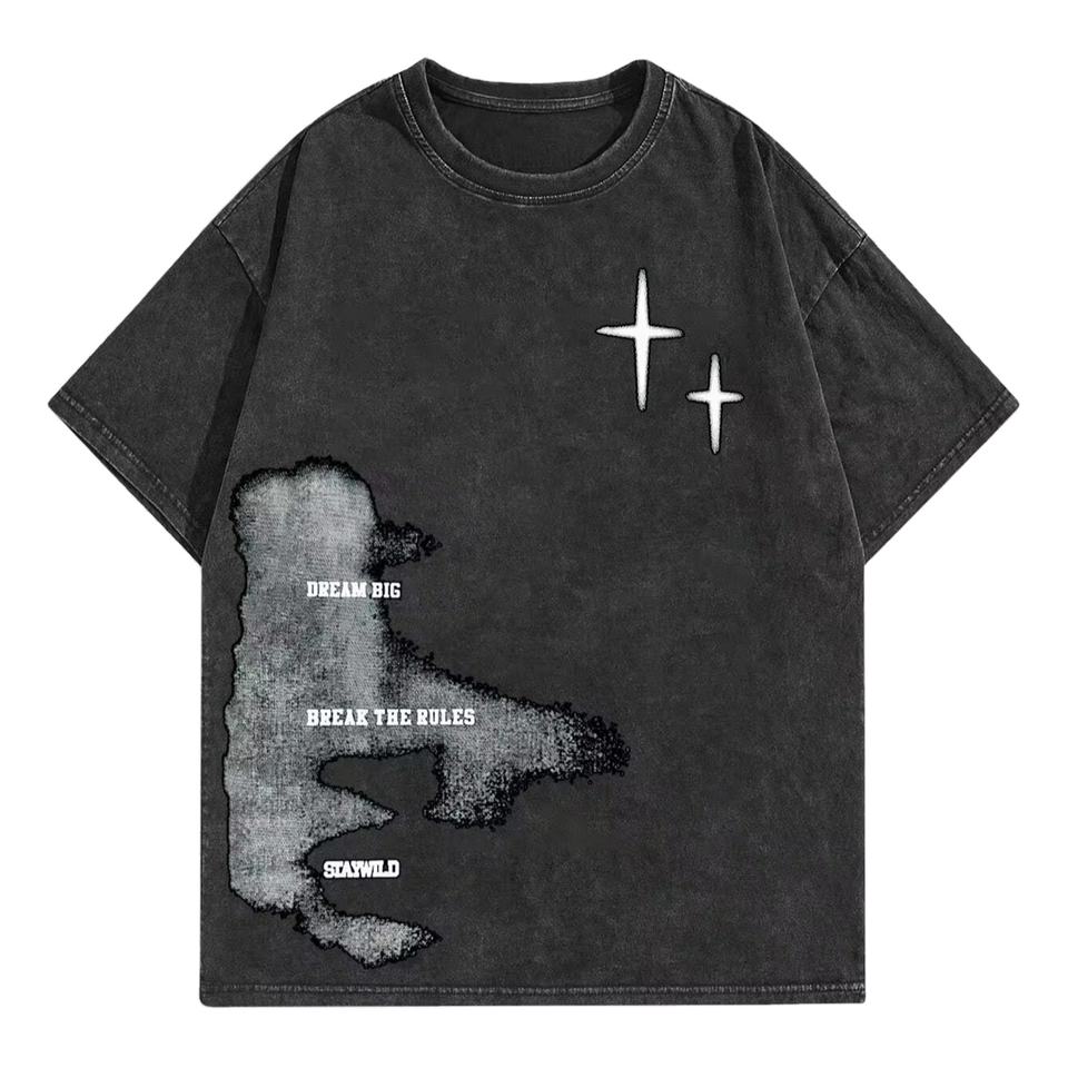 เสื้อยืดลายแอซิดวินเทจสำหรับผู้ชายผ้าฝ้ายนุ่ม100% ใยไผ่พิมพ์ดิจิตอลสไตล์อินเทรนด์