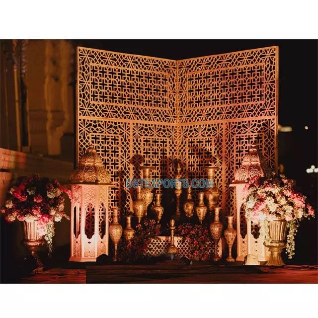 เฟรมเลเซอร์สำหรับรับงานแต่งงาน,เฟรมตัดแบบเลเซอร์สีทองสำหรับตกแต่งฉากหลังที่ได้รับความนิยมในงานแต่งงาน