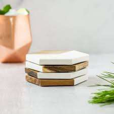 คำอธิบาย:ที่รองแก้วหินอ่อนไม้
