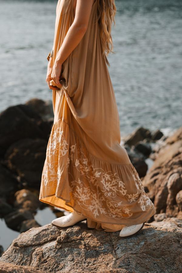 เสื้อผ้าแฟชั่นตะวันตกสุดฮิต สไตล์อารี โบฮีเมียน ปักลายเม็กซิกัน เสื้อคลุมยาวผ้าฝ้ายโบโฮ สำหรับฤดูร้อน สไตล์รีสอร์ท ฮิปปี้ แม็กซี่