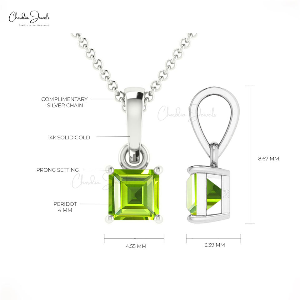 เครื่องประดับทอง14K ยอดนิยมราคาสมเหตุสมผลจี้สายพลอยสี่เหลี่ยมสีเขียวธรรมชาติสำหรับงานแต่งงาน