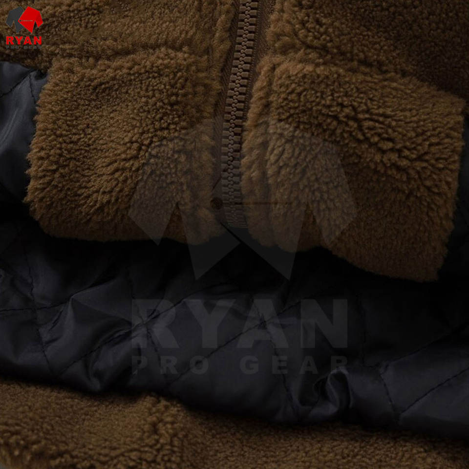 แจ็คเก็ตเชอร์ปาสำหรับผู้ชาย กำลังเป็นที่นิยม รับสกรีนโลโก้ทีมด้านหน้า คอตั้ง ผ้าแคนวาสผสมขนแกะ โพลีเอสเตอร์ 100% ระบายอากาศได้ดี RYAN PRO GEAR