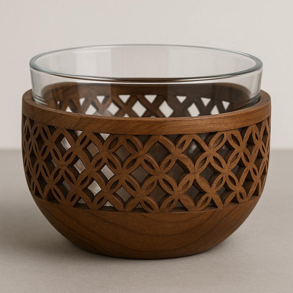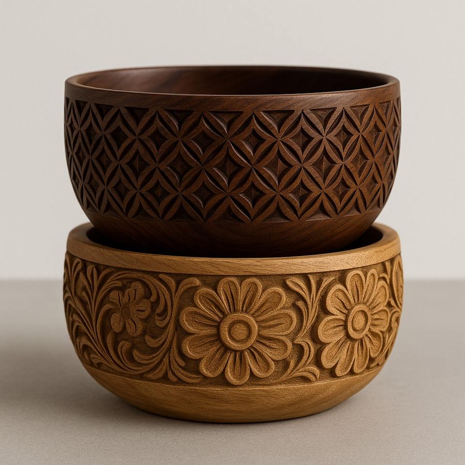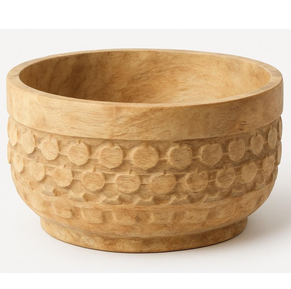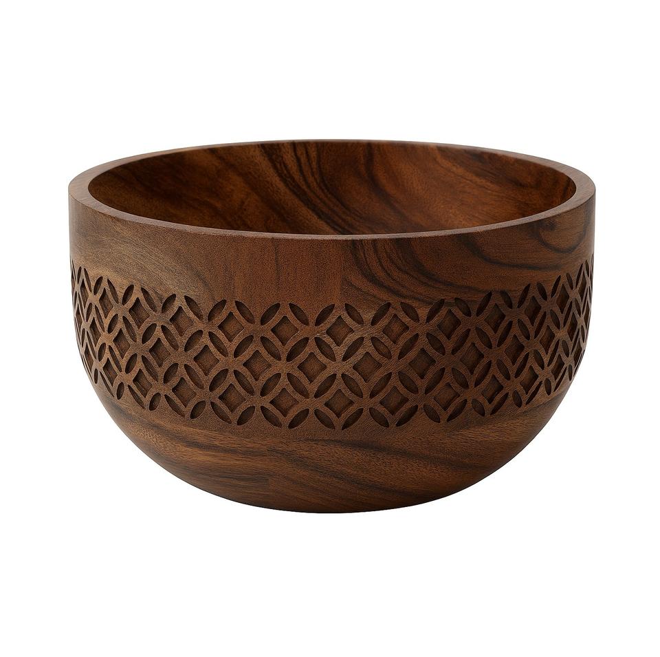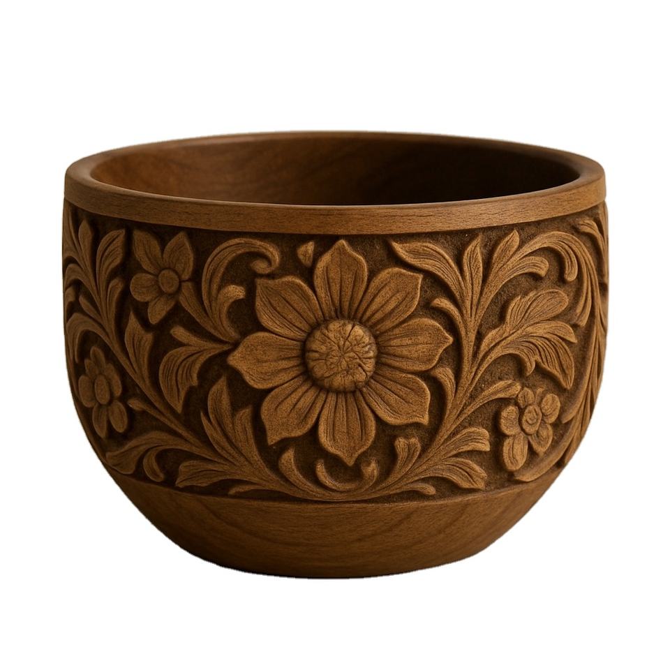 ชามไม้สีน้ำตาลพร้อมดอกไม้แกะสลักลายนูนเหมาะสำหรับตกแต่งบ้านโต๊ะผลไม้แห้งหรือของขวัญตามเทศกาล