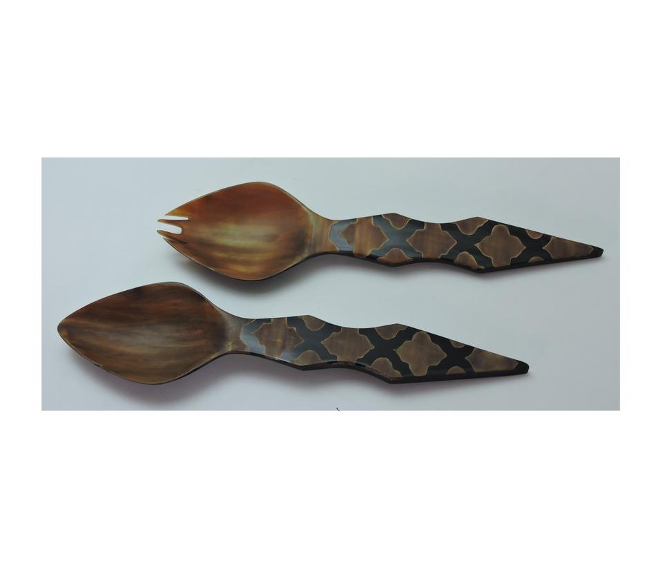 ชุดช้อนตักสลัดลายฮอร์นสุดฮิต 2 ชิ้น ทำด้วยมือจากเขาควายธรรมชาติ ในราคาประหยัดที่สุด