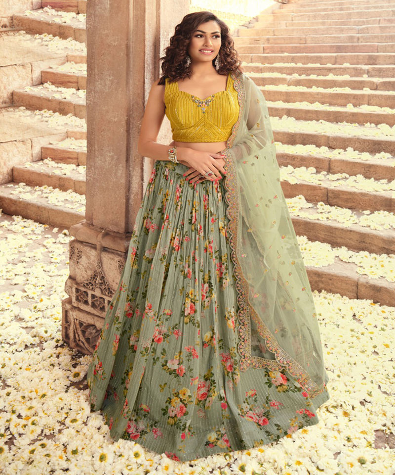 Trending Georgette Embroidery Work Multi Color Rayon Silk Lehenga Choli Dupatta Wedding Wear Wholesale Price Ethnic Garment