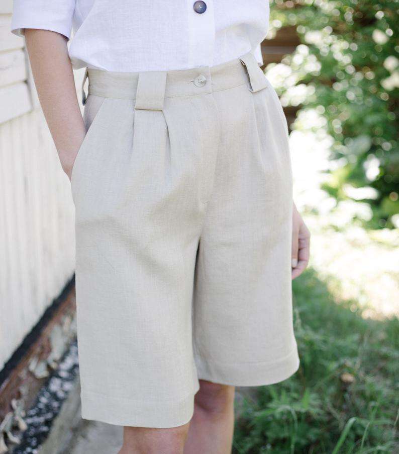 อินเทรนด์การออกแบบล่าสุดสีขาวที่กำหนดเอง Fordable เครปคอวีไป Pock แขนสั้นและกางเกงขาสั้นผู้หญิงชุดผ้าลินิน