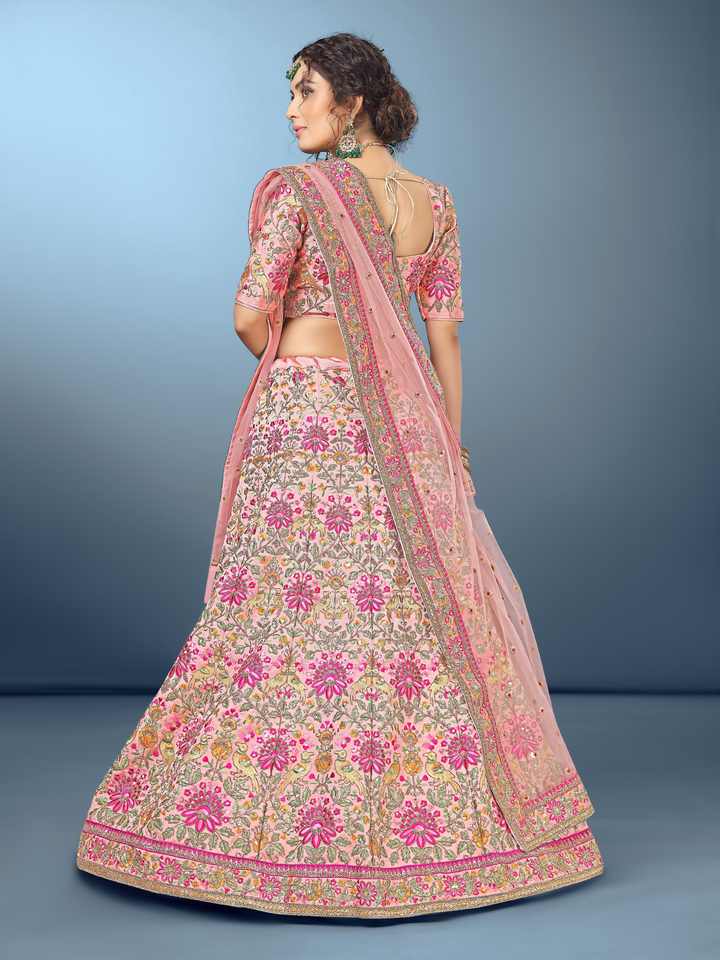 ชุดเลเฮนกาโชลีแบบกึ่งสำเร็จรูป คอวี ปักลายหนัก ผ้าไหมผสม แบรนด์ Trendmalls รุ่น A-Line พร้อมผ้าคลุมไหล่แบบตาข่าย ซักได้