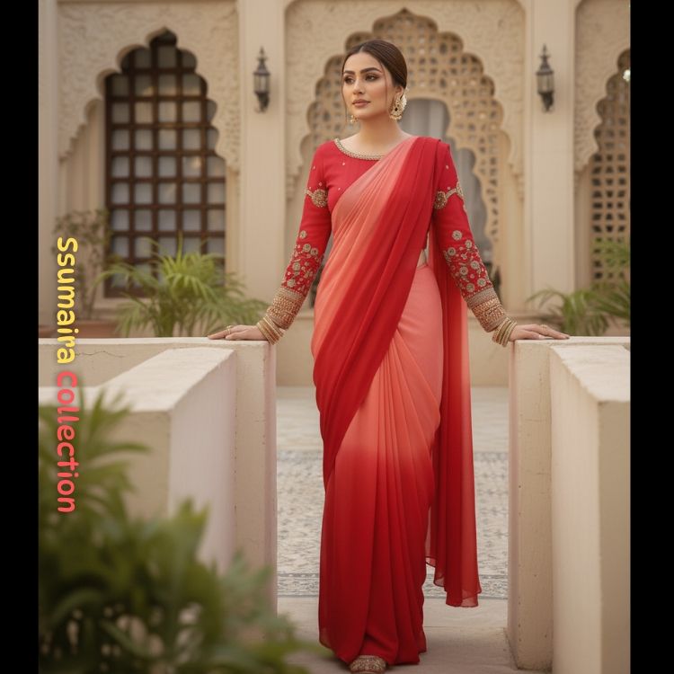 เทรนด์โดย CP นำเสนอเซ็ตส่าหรีชิฟฟ่อนสีออมเบรเสื้อปักลายสีสด/สีพีช