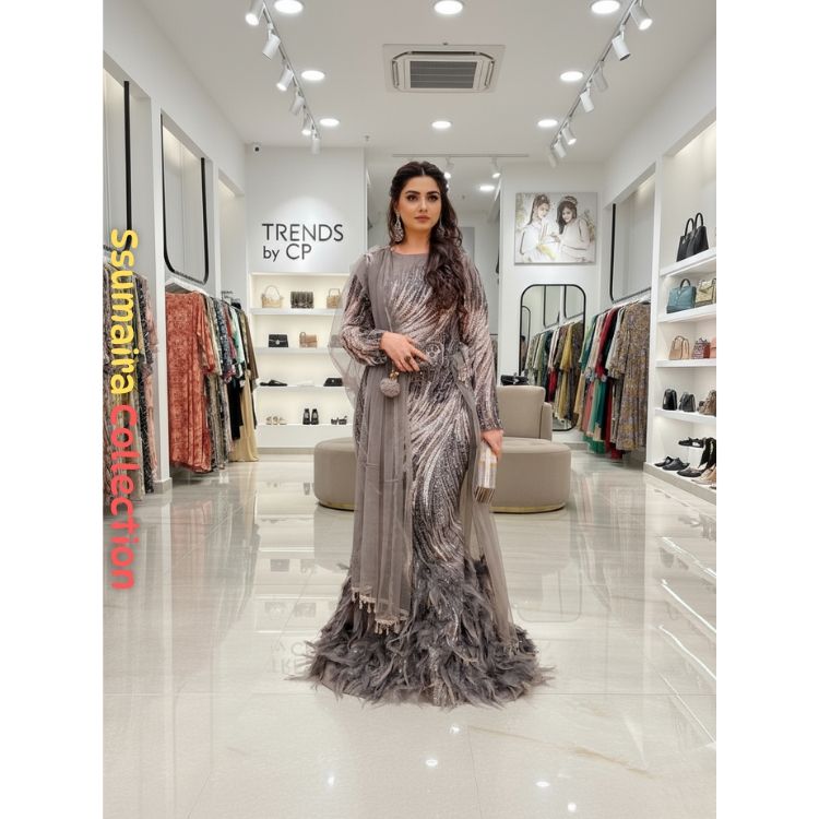 เทรนด์โดย Cp นำเสนอชุดราตรีแบบ Anarkali ดีไซน์เนอร์ชาวปากีสถาน | ชุดเดรสยาวปักลายหนักพร้อมผ้าคลุมไหล่