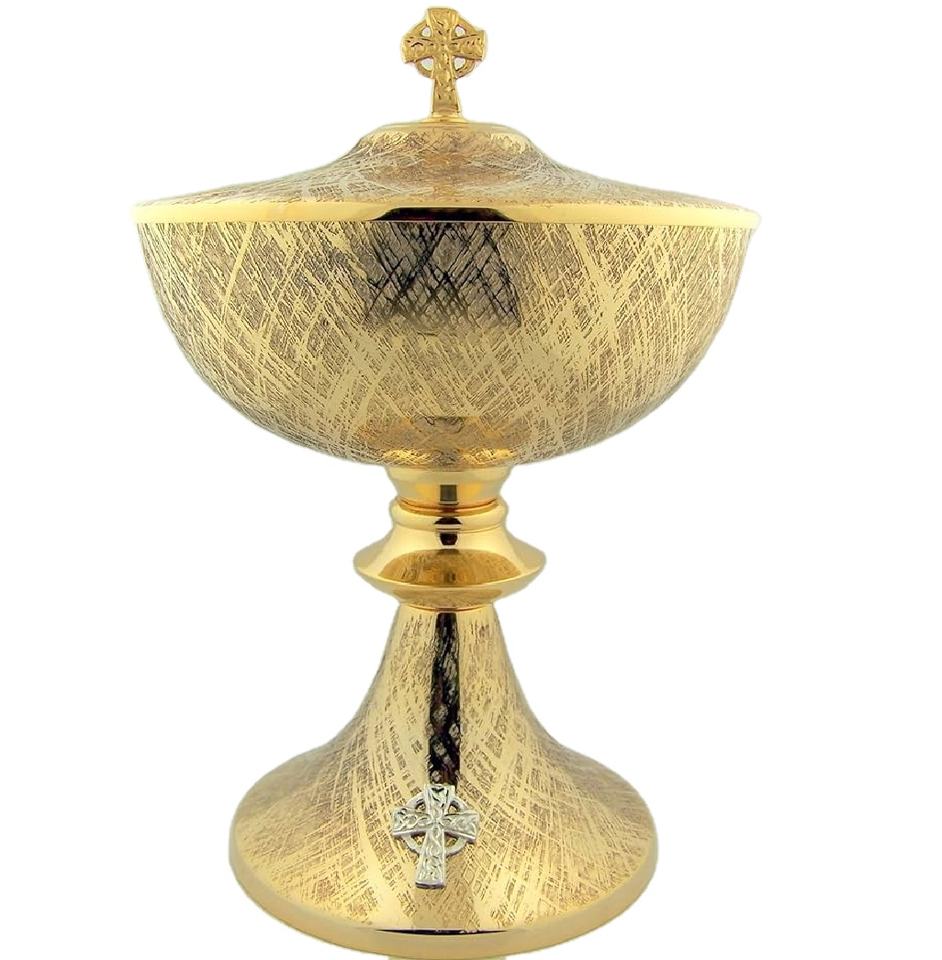 ถ้วยทองเหลืองสําเร็จรูปที่ได้รับความนิยมพร้อมแพเทนสําหรับใช้ในโบสถ์ ถ้วยชุบทองที่แกะสลักและแกะสลักด้วยไซโบเรียม