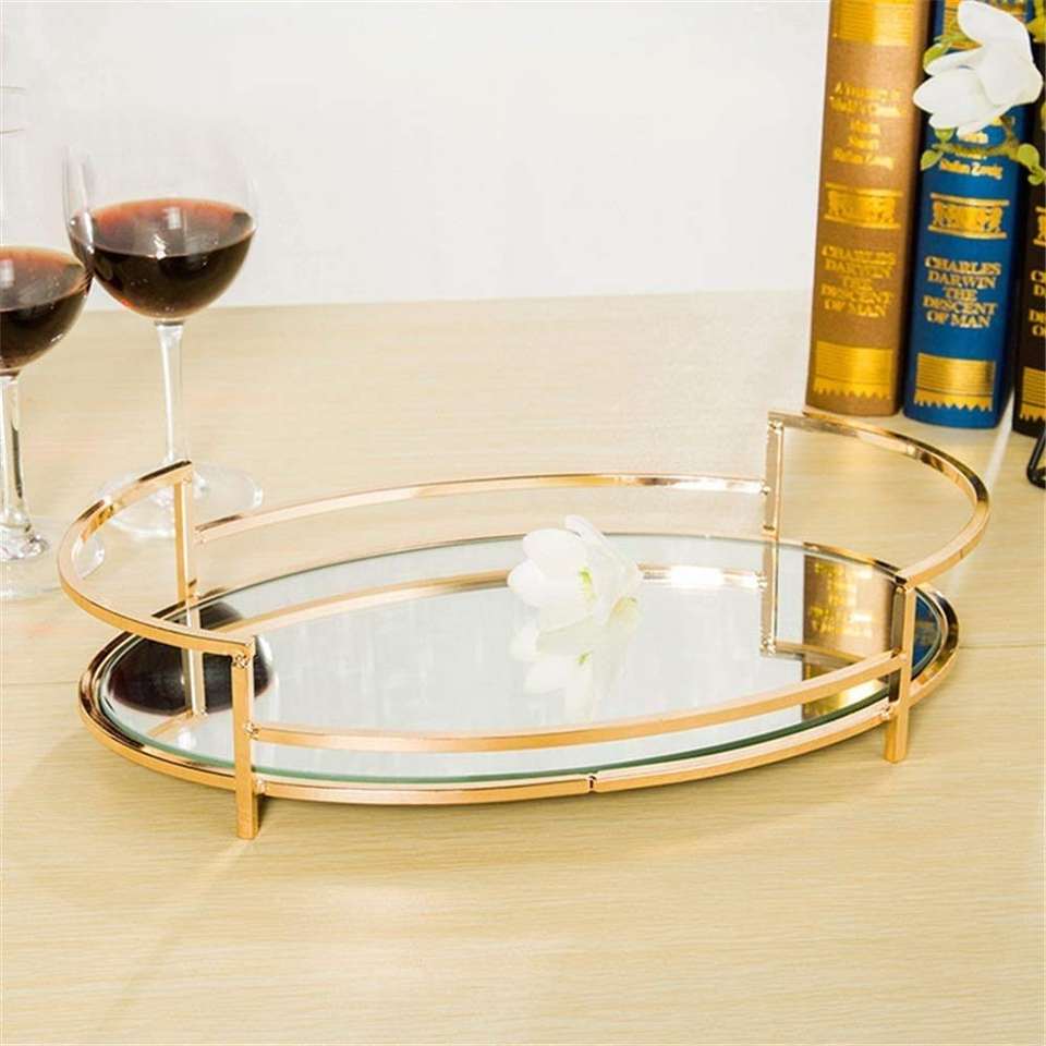 Trendsetting ถาดโลหะกลมเคลือบทองอเนกประสงค์สำหรับกาแฟ